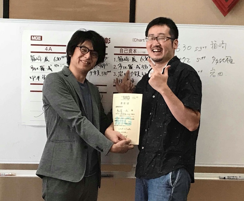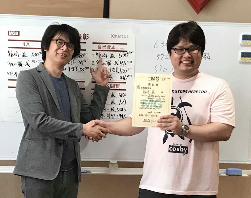 そして2位は表彰式の時に悔しそうな表情が印象的だった、多比羅さん!!まぁ、この方はセンス抜群!!自己資本572 !でもって、まだ15期という末恐ろしい方です。今回のMG研修で一旦卒業ということ・・。初MGからずっと見させていただいた方なので、私の思い入れも深く、寂しい気持ちでいっぱいです。会社にぜひMQ会計を浸透させてくださいね!また遊びにきてください!!