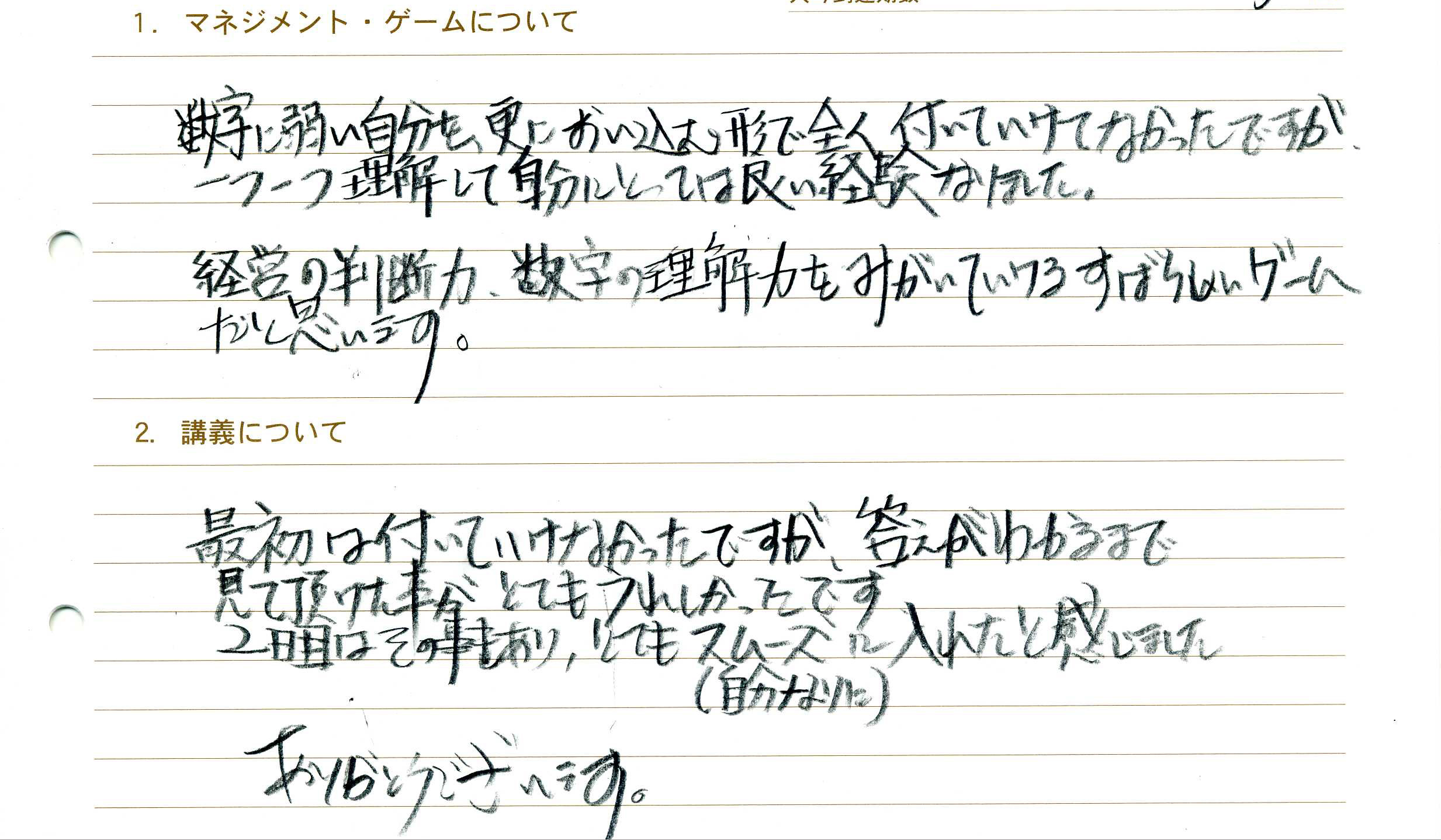 経営の判断力、数字の理解力を磨いていける素晴らしいゲームだと思います。